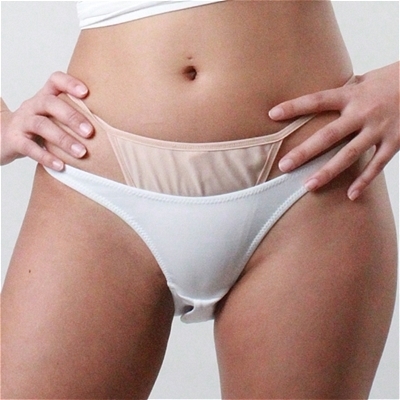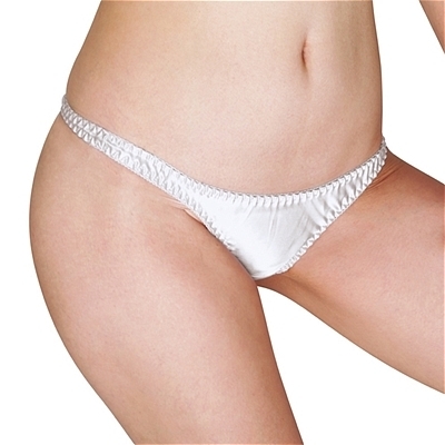 光沢サテン生地レース付きポケット付きTバック Mサイズ ホワイト ホワイト