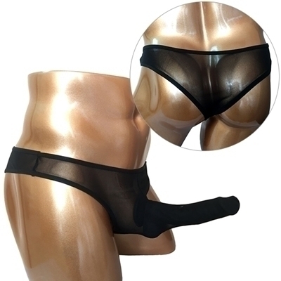 メンズ 光沢ストレッチ生地玉袋付きフルバック Lブラック ブラック