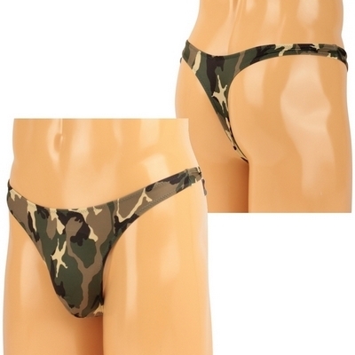 メンズ ストレッチ迷彩プリントTバック グリーン グリーン