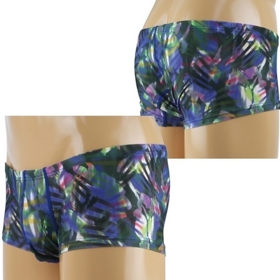 メンズ 2wayストレッチ花柄光沢プリントハーフバック ブルー ブルー