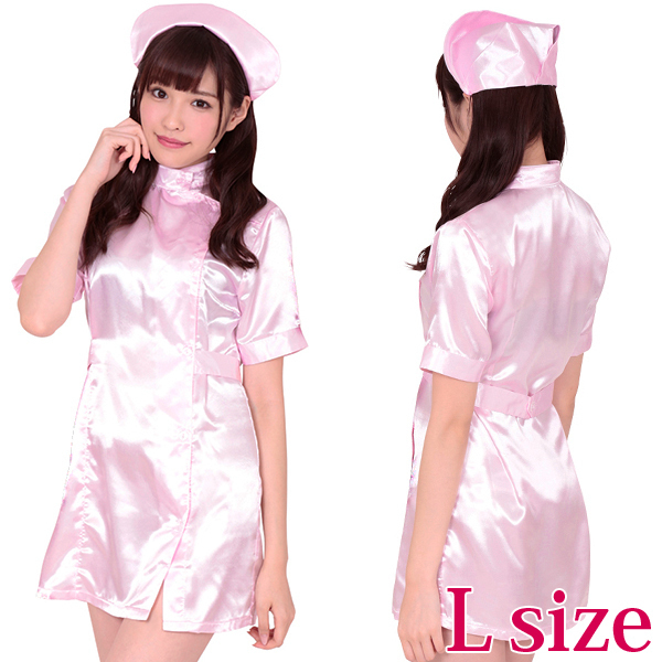 ミニワンピース&キャップがセットになったナース服コスプレ(L)。 ミニ丈ワンピースのギリギリ感と、清楚なイメージのナース姿のギャップはとっても誘惑的!光沢感のあるキュートなピンクカラーが、セクシーさと可愛らしさの両方を演出してくれます。 フロントはボタン式で下まで開きます。 ※Mサイズ( b15884)、LLサイズ( b18127)あります。