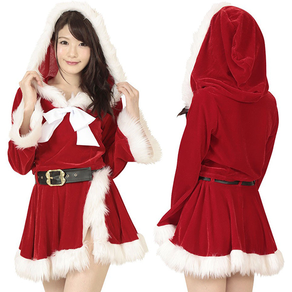 ふんわりファーで雪化粧♪フーディートップス&スカートのラブリーサンタのコスプレセット。 ●短め丈のセクシートップス●フェイクファーで縁取ったフード付き●大きめのフロントリボンがポイントに●巻きスカートにもファー付き●レッグウォーマーで脚元も可愛く●黒ベルトでウエストマーク。 カジュアル&ガーリーなフード付きトップスをヘソ出しのミニ丈にしてセクシーさもプラス!フードを被ってふわふわファーに包まれれば小顔効果もバッチリです。