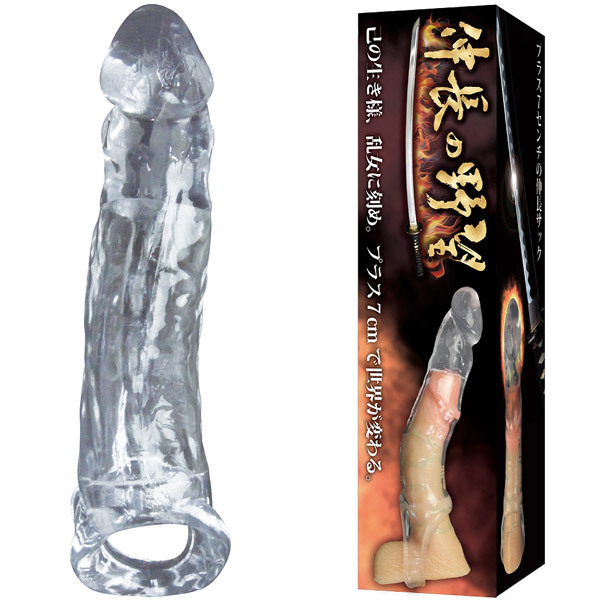 己の生き様、乱女に刻め!装着するだけで+7cmも伸長するオールカバーのペニスサック「伸長の野望 クリア」。 どなたでもフィットしやすいストレッチ素材のエラストマーを使用した透け感のあるクリアサック!玉袋でガッチリとホールドできる玉掛けリング付きなので安定感も抜群です。