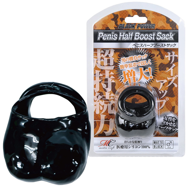 簡単装着で貴男のペニスを逞しく増大!医療用シリコン100%製の素材だから肌触りなめらかで持続力も抜群。 ペニスの根本と玉袋をガッチリとホールドし、ペニスを締め上げることで持続力&サイズアップ効果が期待できる「ペニスハーフブーストサック」です♪伸びる素材だから簡単に装着でき、袋全体を締め上げることで射精感と快感もアップ!女性をイカせるハーフサックといえば、これをおいて他にはないでしょう。