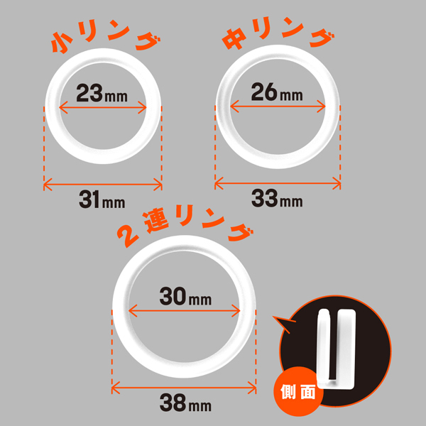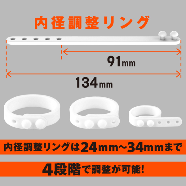 サラスベ質感でベタつき無し!伸縮性が高くて着けやすいソフトタイプのペニス用リング。 皮戻りや持続力アップなどマルチに活躍!内径23mmの小、内径26mmの中、内径30mmの2連リングに加え、好きなサイズに調整できる内径調整リングの4個セットになっているので、個人の身体に合わせてお使いいただけます。 素材は柔らかな高品質シリコンを採用◎