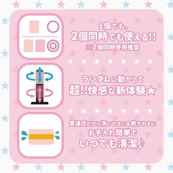 可愛いイラストが描かれたパケ買い必至の日本製オナホ。 「にこにこいもうと」は360度大小様々なイボが張り巡らされたイボ壁が特徴!全長75mmと小さめに設定されているため、別売りの「やんちゃばーじょん( t10581)」と同時使用することで刺激倍増♪ランダムに動かせば超絶快感が体験できる!捻り、回転、ディープスロートなど好みの刺激をお楽しみ下さい。 お手入れし易い貫通式
