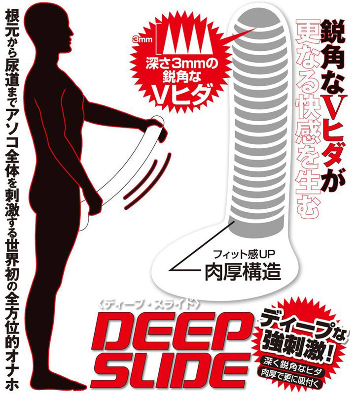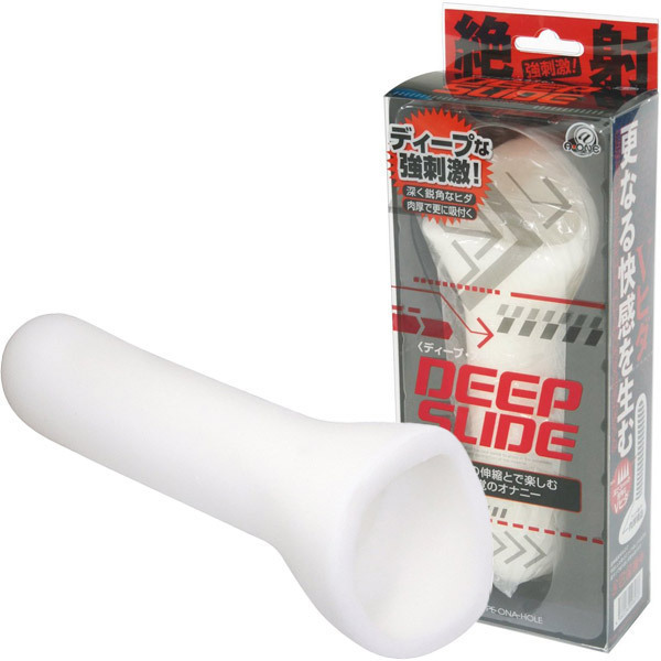 驚異の伸縮オナホがパワーアップ!「ディープスライド」非貫通型は、鋭角なヒダがもたらす強烈な刺激が特徴です♪手で握らずに素材の伸縮を活かし、新感覚のバキューム快感を楽しめるオナホール!内部には高さ3ミリの横ヒダがずらりと並び、ディープな刺激を生み出します。 肉厚な素材との組み合わせで絡みつき感も抜群!内径の狭い設計がフィット感を高め、ホールをスライドさせることでバキューム感も増します♪ローション漏れの心配もなく、後処理も簡単でストレスフリーなオナニーが楽しめます。 肉厚感とバキューム感をパワーアップさせた快適なオナホでハードな刺激を存分にお楽しみください。