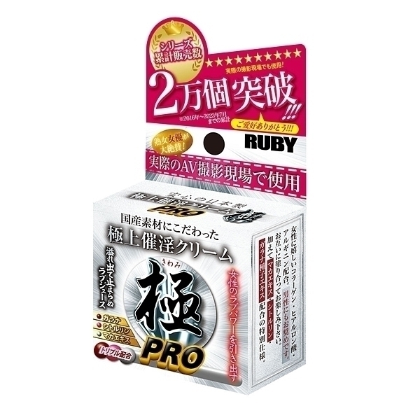 累計販売数2万個突破の大ヒット催淫クリームシリーズに「催淫クリーム極PRO」が新登場。 人気の成分はそのままに新たに3つの成分をトリプル配合。 PROの名にふさわしい商品に仕上がりました。 お互いに塗り合って極上のひと時をお楽しみください。