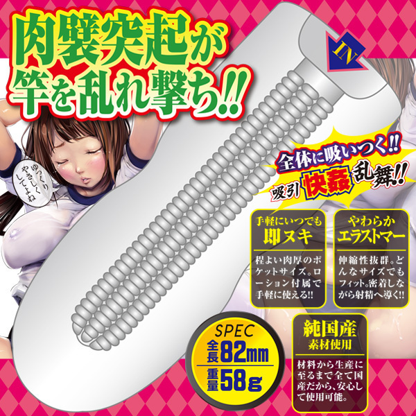 性欲女子とサクッとひとヌキ!エーワン×尾髭丹が送る最強ミニオナホシリーズ!肉ヒダ突起の連続で射精感をグングン高めてくれるミニサイズの非貫通オナホール!肉襞突起が、サオを乱れ撃ち、ゾリゾリ感が心地いい!程よい肉厚のポケットサイズの、ローション付属なので手軽に使える!更に材料から生産に至るまですべて国産で安心。 4種まとめて味くらべしちゃおう♪