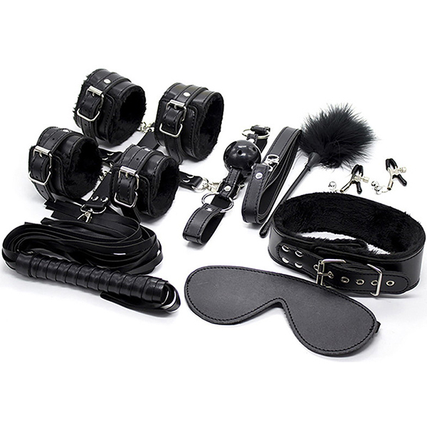 1セットで即SMプレイが楽しめるお得なセット!こちらはクリップやティーザー、手枷と足枷を連結する十字ベルトなどアクセサリーも充実。 さまざまなプレイを展開できます、アイマスクや手枷、足枷の裏側はふんわり素材でつけ心地良し。 首輪にはリードが付いてより主従関係が明確に。 高級感のあるレザー調の質感でムードを壊しません。 ブラック
