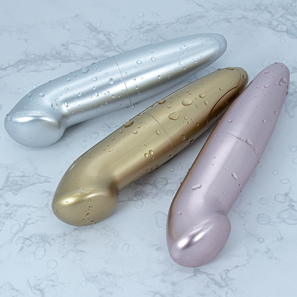 シンプル機能ながらも技ありなシャンパン系カラーのスティックローター「Bu.Ru.Ru(ぶるる) シャンパンシルバー」。 見た目的にもリッチ感のある万能ローターで、ボディ中央からひねるだけでスイッチのON/OFFが可能♪生活防水機能を搭載しているので使ったあとは丸洗いOK。 乳首やクリを刺激しやすいヘッド形状♪もちろん膣内に入れてもちょうど良いスポットを捉えてくれるので、いろいろとマルチに活躍するローターです♪こちらはシルバーのシャンパン系カラーとなっております。