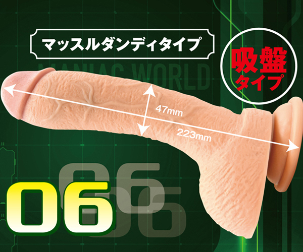 前作「マニアックワールド」の新作!マッチョな超肉感ディルド「マッスルダンディタイプ」が登場。 長さ約22cmのロング仕様、太さは挿入し甲斐のある最大4.7cm!内側は筋肉を感じさせる硬い芯入りで、人肌のように柔らかな皮で包んだ二層構造で仕上げています。 特徴はなんといっても生々しいボディ!極太ロングな男根にマニアも唸ること間違いなし♪底面は強力吸盤付き