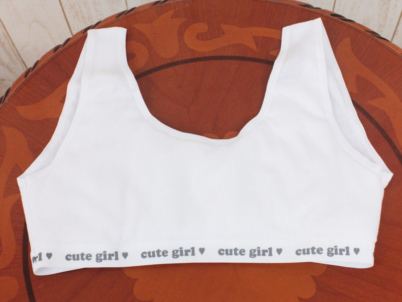 キュートガールに変身!純白リブ編み仕様のリアルなスポーツブラ単品(M)。 適度にクッション性のある、メッシュウレタン素材の裏打ち仕様なので、とっても優しい着け心地!普段使いはもちろん、コスプレ衣装のお供にも最適なスポブラです。 ぜひ、リブ編み綿パンツとお揃いでどうぞ! ※水洗い可、塩素系漂白剤による漂白不可、アイロンは中温で当て布使用、ドライクリーニング可。