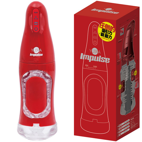 圧倒的な吸引力が自慢!使い捨てオナカップシリーズ・YUIRAブランドから初の電動オナホが登場(ユイラ インパルス)。 外観は印象的な真っ赤なボディ。 そして特筆すべきはこれまでの電動ホールの常識を覆す、吸い込まれるバキューム機能!突出した挿入口に鮮やかな赤いプラスチック製のボディ。 10種の振動と4パターンのバキューミング機能で、それぞれコンビネーションパターン設定があり有機的なバキュームアクションとなっています!振動は左右のローターが段違いで内蔵されていて10パターンが楽しめ、インナーホールはTPE素材で柔らかい♪挿入直後の突起イボと連続したヒダが心地良い!ホール部分は分離・開閉できるので、本体から外せばパックリ2つに開けて洗浄もラクラク。 電源はUSB充電式でフル充電180分で連続稼働60分です!