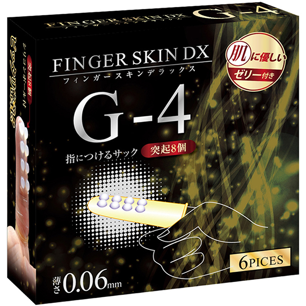 安全、清潔に使えて気持ちいい♪ラブグッズ版の指サック「フィンガースキンDX (G−4)」です。 シリコン製のミニボールに突起が8個ついた指サックでクリトリスを愛撫したりアソコに挿入したりと使い方は自由自在!4個×2列に配置されたシリコンボールはアソコに挿入するとボコボコの粒快感♪6個入りで個包装されているので清潔にお使いいただけ、Gスポットをズリズリしたりと着けるだけでご自身の指技をグレードアップしてくれます!薄さはコンドームのような0.06mm。 挿入したときの体温が感じられたりとお互いに興奮すること間違いなし!表面には挿入をフォローしてくれるゼリーが塗布されていて平均的な男性の指サイズだからフィット感も抜群。 指責めのメリットを味わいながらコリコリ感やズリズリ感を与えることができます!